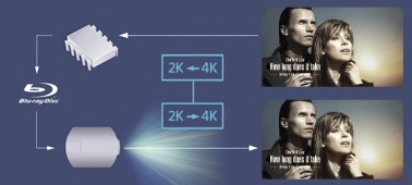ソニーピクチャーズの発売する高画質ブルーレイソフト「Mastered in 4K」ブルーレイ(*)。4K解像度の高画質マスターファイルをソニー独自のフィルターにより、高ビットレート・広色域情報を保持しながらフルHD解像度にダウンコンバートしオーサリングしたものです。VPL-VW855では「Mastered in 4K」ブルーレイ(*)の2Kデータを4Kへアップスケーリングする際に、オーサリング時と同一のフィルターを使用する「Mastered in 4K」モードを搭載。ダウンコンバートとアップスケーリングを同じフィルターで処理することにより、オリジナル4Kマスターに限りなく近い高品位な映像クオリティーで楽しめます。