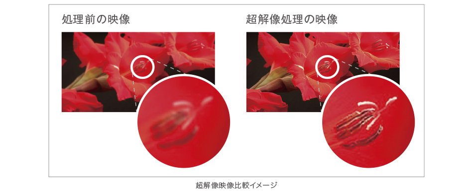 ネイティブ4Kパネル0.74型「4K SXRD」を搭載。これにより、フルHDパネルでは表現できない高精細かつ自然な表現が可能になり、被写体の輪郭や微妙なディテールまでクリアに描きだします。また、ネイティブ4Kパネル採用で3Dコンテンツも2Dコンテンツと同様に4K解像度で臨場感豊かに楽しめます。さらに、ソニーが十数年培ってきた「データベース型超解像処理LSI(リアリティークリエーション)」を搭載。フルHDの映像信号(3Dを含む)をより高精細な4K(水平4,096×垂直2,160画素)映像信号に変換します。ソニー独自の「データベース型超解像」においてパターン分類手法を「学習型」に進化させることで、画像に合わせた最適な超解像処理を可能にし、きめ細やかで高品位な4K映像の生成を実現しました。