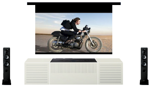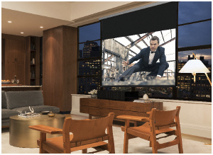 スクリーンから約16cm(*1)の至近距離で100インチ、約26cm(*1)の至近距離で120インチの4K映像を投写できます。スクリーンのほぼ真下から投写するので、近づいても影の映り込みがありません。また、天吊投写・リア投写(*2)・床面投写・天井投写といった、さまざまな方法での設置も可能です。(*3)