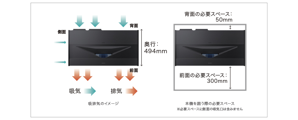 本機は背面から吸気し、前面に排気して内部を冷却します。吸排気口をふさがないようにしてください。