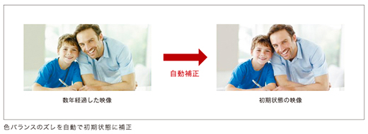 長時間使用する中で、プロジェクターの色バランスには少しずつズレが発生していきます。それを補正するのが新搭載の「オートキャリブレーション」機能です。本体に内蔵されたカラーセンサーが投射光を解析し、初期状態からの色バランスのズレを判定。本体メニュー画面から「オートキャリブレーション」→「調整」を選択するだけで、ホワイトバランスなどカラーマネジメントを補正します。別売の光学センサーやパソコン等は不要なため、手間なく簡単に高品位な4K映像をご堪能いただけます。また、「プリチェック」機能により色のズレ度合を数値で確認できるため、キャリブレーションが必要な状態かを確認することも簡単です。