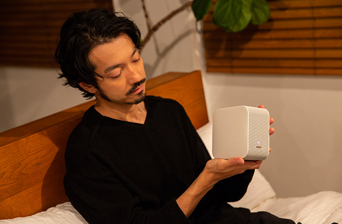 すごいコンパクトですよね。プロジェクターって大きいイメージがあるから置く場所に困ると思ってたんですけど、今までの悩みが解消される。画質も柔らかい感じで睡眠前にくつろぎながら映像を観られる気がします。寝る前に映画を高精細なテレビで観るとなると、あまりリラックスできないときがあるんです。例えば「男はつらいよ」の「寅さん」シリーズを観ているときに、映像がきれいすぎてストーリーが頭に入って来なかったり(笑)。