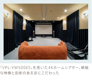 今、もっとも力を入れているのが4Kですね。4K映像の鮮やかさは圧倒的ともいえるほどで、私自身『QUALIA 004』に初めて触れた時の驚きとワクワクをもう一度感じています。多くの人にこの感動を体験してほしいと思って、ホームシアターをお望みのお客さまには必ず4K対応プロジェクター『VPL-VW500ES』の視聴をおすすめしています。4Kをご存じのお客さま、またはすでに体験されているお客さまは確実に増えてきていますが、多くは液晶テレビや映画館での体験です。プロジェクターを使った4Kの体験はテレビとも映画館とも異なる、映像に包み込まれるような独特の迫力と臨場感が味わえます。Laboにご来店いただき、4Kホームシアターのすばらしさをぜひ体感していただければ、と思います。