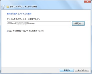 2. 圧縮(ZIP形式)フォルダの展開ウィザードにおいて、「展開」をクリックしてください。