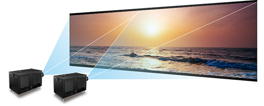 プロジェクターを複数台並べてマルチ画面表示をする際、つなぎ目の映像の重なりが目立たないように調整できます。