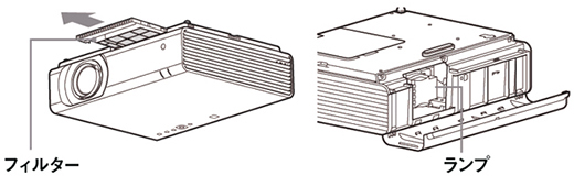 フィルターはスライド式で前面から引き出すことができ、ランプは背面から取り出しが可能なため、天吊り時もメンテナンスが容易です。