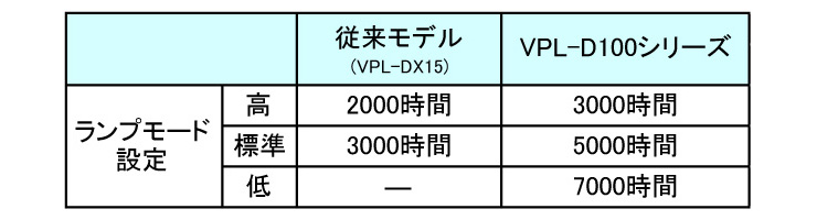 さらに、ランプモード[低]で使用した場合、最長7000時間ランプ交換の必要がなく、TCO削減に貢献します。