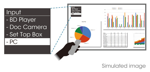 別売のIFU-WLM3をUSB端子に接続することで、PCから無線で画像転送ができますので、グループワークやディスカッションなど参加型の授業や会議に適しています。