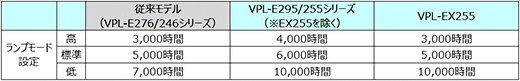 ・映像投写中でも、画面に一定時間動きが無い場合は自動でランプ出力を徐々に絞る「ランプ減光モード」を搭載しています。