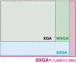147万画素のSXGA+のパネルを3枚採用し、1,400 ×1,050ピクセルの高精細な画像を映します。
