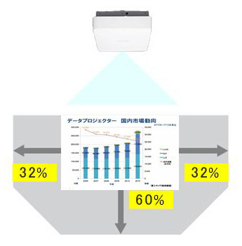 手動で左右にスクリーン全幅の±32%、上方向にスクリーン全高の+60%までのレンズシフトが可能です。