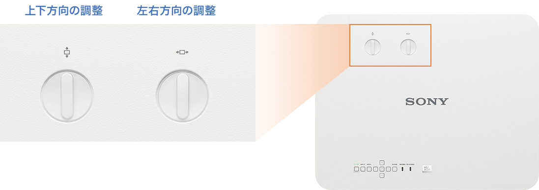上下方向-35% - +55%、左右方向±15%のレンズシフト機能を搭載しているため、設置後、投写画像の位置調整が容易です。