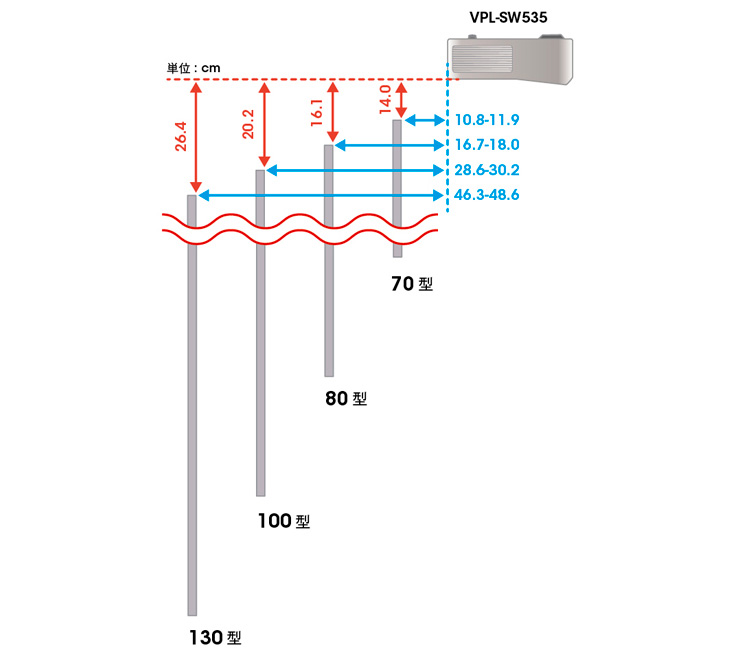 上下方向±約4%、左右方向±約2%のレンズシフトに加え、1.05倍のズームレンズを搭載しているため、設置後、投写画像の位置調整が容易です。