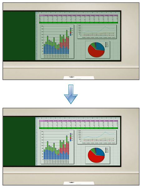 照明の付いた教室や打合せスペースでも、明るくくっきりとした映像を映し出します。
