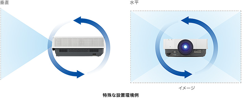 ※ VPL-PHZシリーズ、CWZシリーズは上記の「垂直(前後転360度傾斜設置)」のみ対応となります