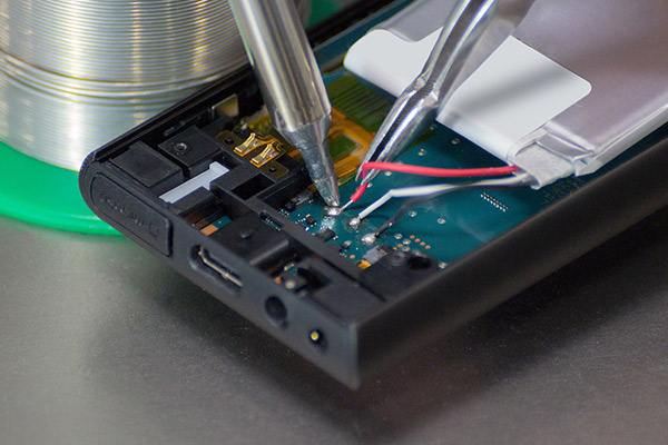 基板とバッテリー線材の接続部分に、微量の金が入った無鉛はんだを採用。透明感や艶のあるボーカルの実現を可能にしました。