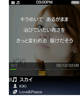 再生中の音楽に合わせて歌詞を自動でスクロール表示。歌詞を読みながら音楽を楽しめます。
