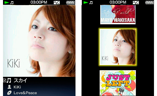 音楽再生中にボタン操作でジャケット写真をスクロールできます。ジャケット写真を楽しみながら、聴きたいアルバムを探せます。