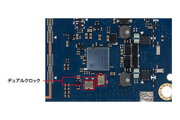 サンプリング周波数に合わせて2個のクロックを切り替えることで、いずれの信号にも完全に同期。ベールが取れたような透明感のあるサウンドを実現します。