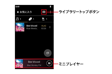 頻繁にアクセスする画面へジャンプできるショートカット機能を搭載しました。例えばライブラリートップボタンをタップするとライブラリーへ、最下部のミニプレーヤー部分をタップすると再生画面へジャンプすることが可能です。