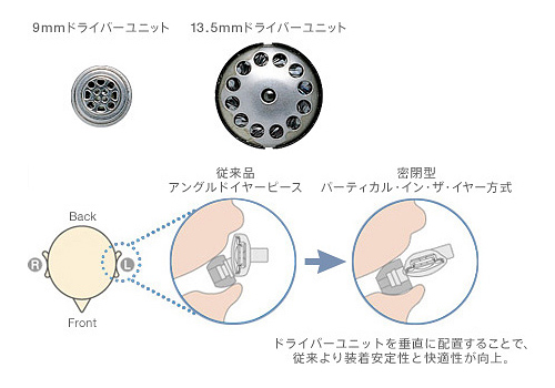 優れた音の再現力を実現する直径13.5mmの大口径ドライバーユニットを採用。筐体とドライバーユニットを一体化し、気密性を高めた音響構造により音の漏洩を低減しました。優れた装着性を維持しながら、低域から高域までの広い帯域でクリアな音質を余すところなく耳に届けます。