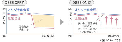 MP3などの高圧縮音源を、原音により近い広がりのある音で再生。圧縮率を上げても、音質劣化が少なく、聴き疲れのしにくい自然な音で楽しめます。