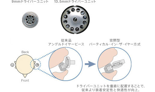 優れた音の再現力を実現する直径13.5mmの大口径ドライバーユニットを採用。筐体とドライバーユニットを一体化し、気密性を高めた音響構造により音の漏洩を低減しました。優れた装着性を維持しながら、低域から高域までの広い帯域でクリアな音質を余すところなく耳に届けます。