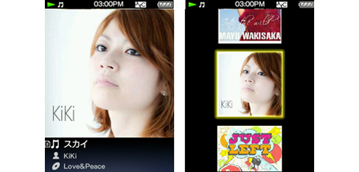 音楽再生中にボタン操作でジャケット写真をスクロールできます。ジャケット写真を楽しみながら、聴きたいアルバムを探せます。