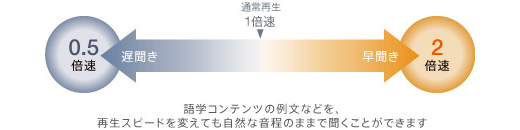 再生スピードを9段階(0.5倍-2倍速)で調節可能。デジタル処理によりスピードを変えても自然な音程で再生できるので、自分に合った速さで聴けます。
