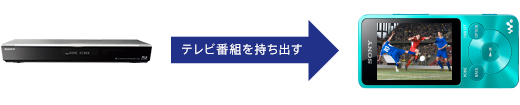 ブルーレイディスクレコーダーで録画した番組をウォークマンに取り込むことが可能。通勤中や外出先でのちょっとした空き時間など、好きなときに好きな場所で録画した番組を楽しめます。