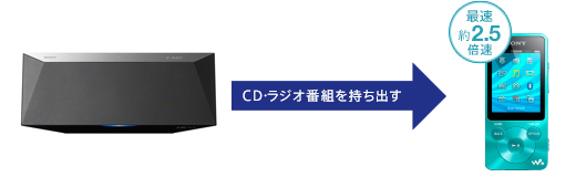 マルチコネクトコンポやドックコンポから、CD の音楽やラジオ番組をウォークマンに録音(*1)して持ち歩けます。FM/AMラジオ放送のタイマー録音(*2)も可能です。