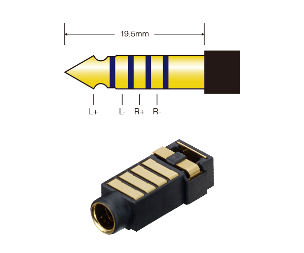 ヘッドホンプラグ1本でバランス接続でき、接続安定性にも優れたφ4.4mmのヘッドホンジャック(5極)を採用。φ3.5mmよりも各チャンネルの抵抗値が近く、接触抵抗も低いので、音の解像度・広がり・奥行きを余すところなく表現できます。