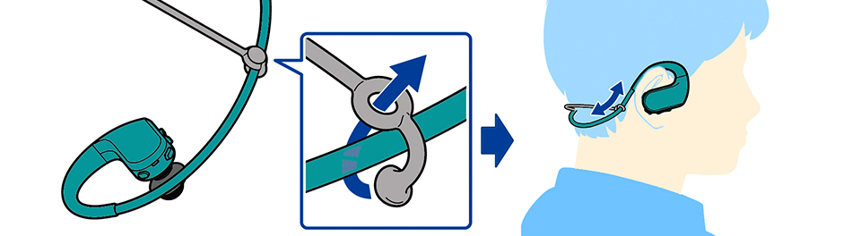 スポーツ時に気にならない約32gの軽さ。ウォークマン本体を頭部にしっかりと安定させ、水流抵抗も考慮したネックバンド形状を採用しました。また、耳にかかる本体部分をシームレス化し、ラウンド形状にしたことでフィット感をより向上させています。ランニングやスイミングなどスポーツ時にもしっかりとホールドされ、ズレたり外れることを気にせず快適に使用できます。