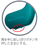 ウォークマン本体右(R)の戻しボタンを長押しで早戻しを、送りボタンを長押しで早送りできます。