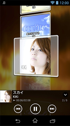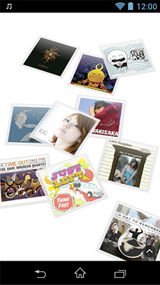 アルバム名やアーティスト名順に表示されるジャケット写真を指でタッチすれば、選んだアルバム単位で選曲できます。