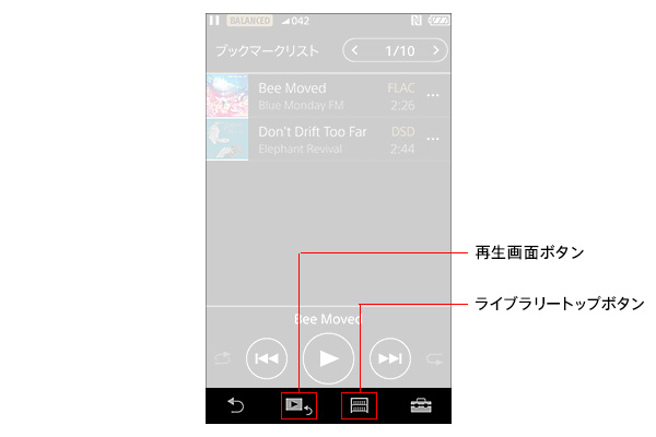 頻繁にアクセスする「再生画面」や「ライブラリートップ」に、どの画面からでもジャンプできるショートカットボタンを常時設置しました。