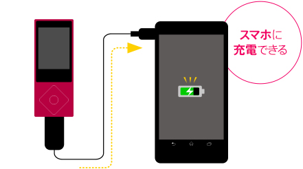 別売のスマートフォン充電ケーブル WMC-NWC10を使えば、ウォークマンからスマートフォンへの充電ができるので、スマートフォンの電池が少なくなったときでも安心です。