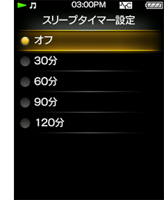 スリープタイマー機能を搭載。設定した時間が経過すると自動的に再生が停止するので、お気に入りの曲を聴きながら眠りたいときなどに便利です。タイマーは30分単位で120分まで設定できます。