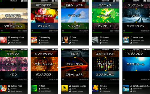 ソニー独自の12音解析技術により、“ウォークマン”のミュージックライブラリにためた楽曲を10チャンネルに自動分類。チャンネルを選ぶだけで、そのときの気分やシーンにあった楽曲を楽しめます。