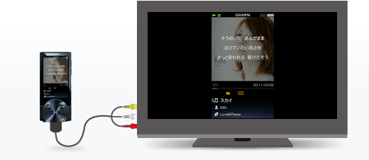 映像/音声出力ケーブルWMC-NWV10(別売)でテレビと接続。歌詞を表示している音楽再生画面をテレビ出力できるので、みんなでカラオケを楽しむこともできます。
