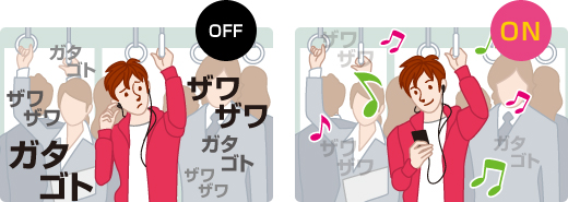 本体に付属のBluetooth(R)ヘッドホンにノイズキャンセリング機能を搭載。周囲の騒音を約90%カットします。