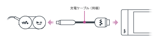 Bluetooth(R)ヘッドホンの電池残量が少なくなったときは、“ウォークマン”の内蔵電池でヘッドホンを充電することができるので、いざという時に便利です。