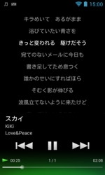 再生中の音楽に合わせて歌詞を自動でスクロール表示。歌詞を読みながら音楽を楽しめます。さらに、聴きたい歌詞にタッチすれば、曲がそのフレーズまで飛んで、すぐに再生をはじめます。