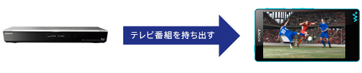 ブルーレイディスクレコーダーで録画した番組をウォークマンに取り込むことが可能。通勤中や外出先でのちょっとした空き時間など、好きなときに好きな場所で録画した番組を楽しめます。