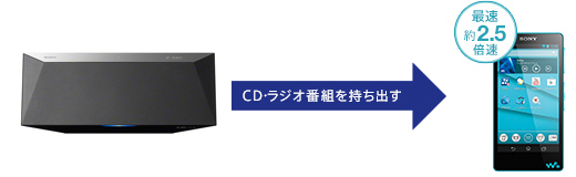 マルチコネクトコンポやドックコンポから、CD の音楽やラジオ番組をウォークマンに録音(*1)して持ち歩けます。FM/AM ラジオ放送のタイマー録音(*2)も可能です。