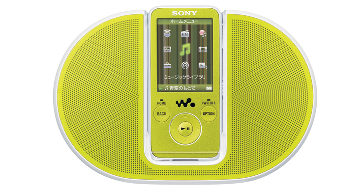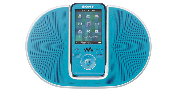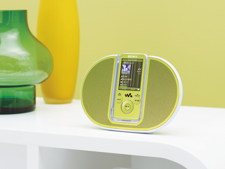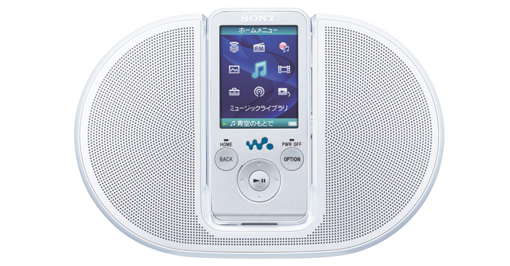 ■“ウォークマン”とトータルコーディネートされた、スタイリッシュな専用スピーカー付き。もちろん“ウォークマン”の充電もOK(*1)