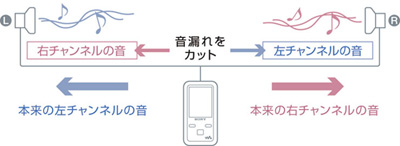 従来は、ステレオの左右の音が各ヘッドホンに漏れ、本来のステレオ感を損なっていました。この音の混在を抑制、クリアなステレオ感を実現しました(*)。