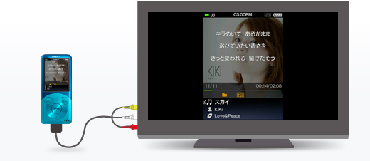 映像/音声出力ケーブルWMC-NWV10(別売)でテレビと接続。歌詞を表示している音楽再生画面をテレビ出力できるので、みんなでカラオケを楽しむこともできます。