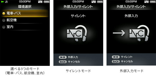 ■音楽を再生しなくても周囲の騒音を抑える『サイレントモード』
