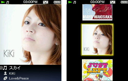 音楽再生中にボタン操作でジャケット写真をスクロールできます。ジャケット写真を楽しみながら、聴きたいアルバムを探せます。